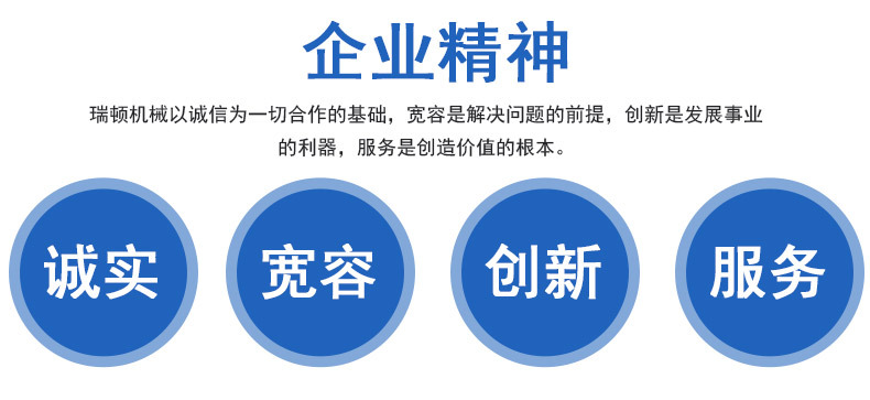 瑞頓機械以誠信爲一切合作的基礎,寬容是解決問題的前提,創新是發展事業的利器,服務是創造價值的根本。